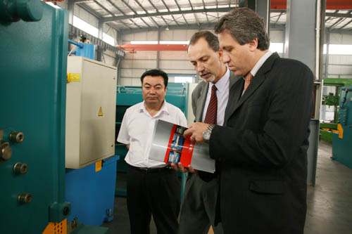 Aldo Strobbe Turk先生和Michael Can先生分別是秘魯一家專業(yè)機(jī)械進(jìn)出口公司的采購經(jīng)理和銷售經(jīng)理。他們此行的目的是對(duì)我公司進(jìn)行實(shí)地參觀考察,并尋求以中德在秘魯獨(dú)家代理的形式與中德達(dá)成合作意向。公司領(lǐng)導(dǎo)熱情地接待了兩位外商。公司領(lǐng)導(dǎo)首先給秘魯客商介紹了我公司近年來產(chǎn)品的研發(fā)、生產(chǎn)、銷售情況以及我公司產(chǎn)品在國內(nèi)外市場(chǎng)的影響和地位。隨后陪同外商參觀了成品車間并現(xiàn)場(chǎng)演示運(yùn)行了機(jī)器,裝配車間,大件車間和零件倉庫。參觀完后,兩位秘魯客商都對(duì)我公司產(chǎn)品的機(jī)型型號(hào)、生產(chǎn)制造技術(shù)、零配件等諸多方面非常滿意,并愿以在秘魯獨(dú)家代理的形式與中德建立長(zhǎng)期穩(wěn)定的合作關(guān)系。