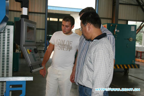 一進我們的生產車間,外國友人就被正在運轉中的機器吸引住了,在參觀了機器的成產流程后,他們還不住地向旁邊的技術工人提出問題,在得到了充分的回答后不住地點頭稱道,臉上也露出了贊許的目光,之后,公司領導將他們引領至成品車間,一排排嶄新的機器整齊的排列在車間里,干凈的地板,先進的設備,無不透露出我公司在產品生產的各個環節所做的努力和成績。