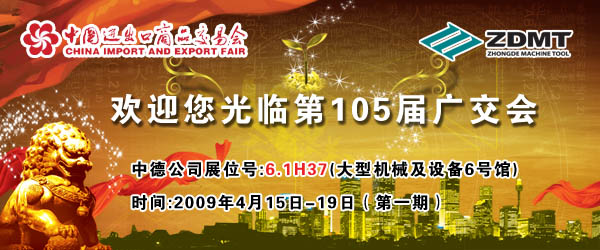 中德機床將參加第105屆春季廣交會,具體時間和地點是廣交會一期,4月15—4月19日,琶洲館大型設備及機械展區(6號館),展位號 6.1H37。歡迎各位新老客戶光臨。